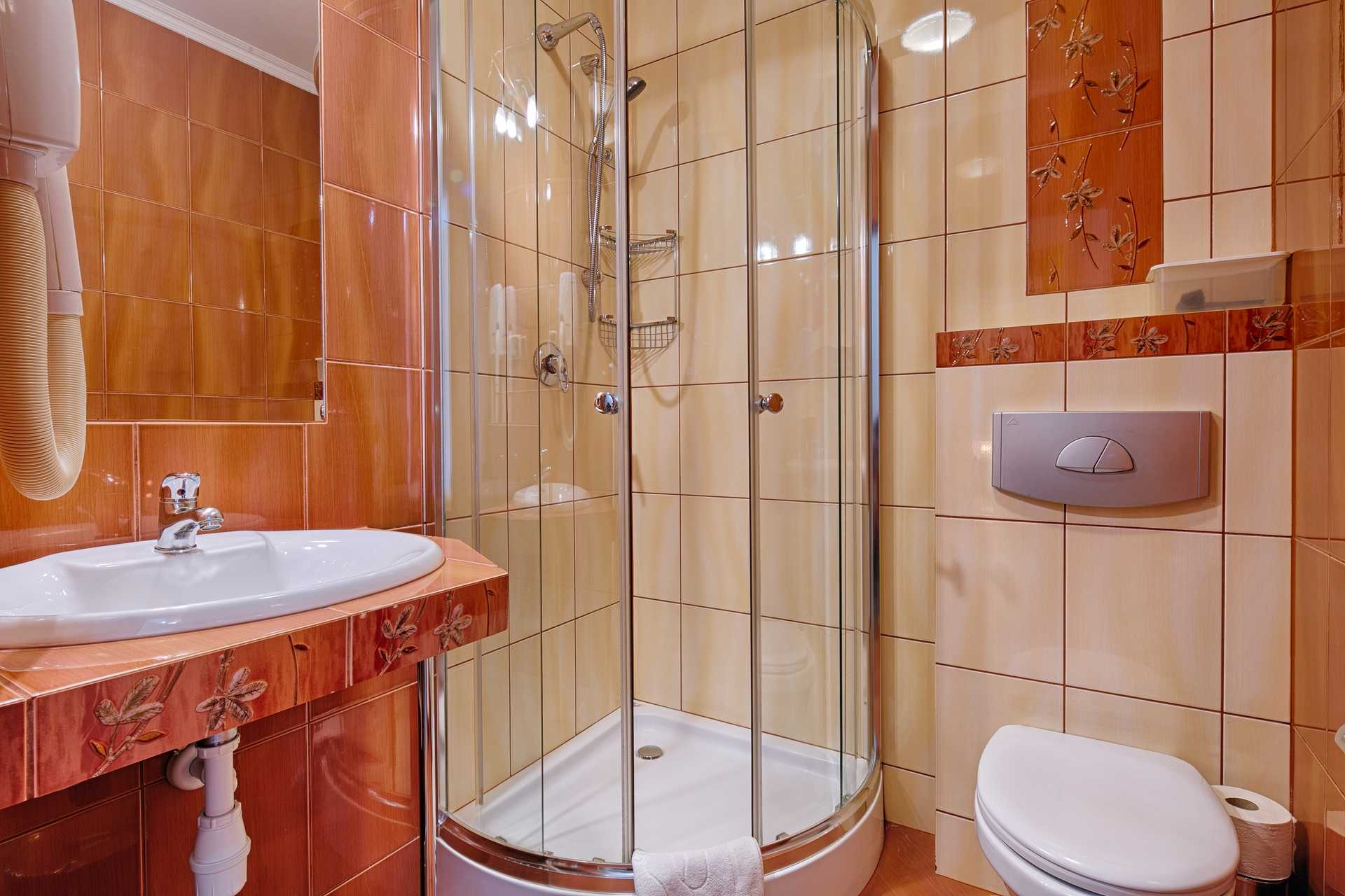 W sypialni jest podwójne łóżko, które w razie potrzeby można podzielić oraz kącik do przygotowywania posiłków (jest tu mikrofalówka, czajnik elektryczny, talerze, sztućce, szklanki i kubki). W pokoju są dwa pojedyncze łóżka. Wejście do łazienki jest z przedpokoju. Dokładna lista udogodnień znajduje się poniżej.